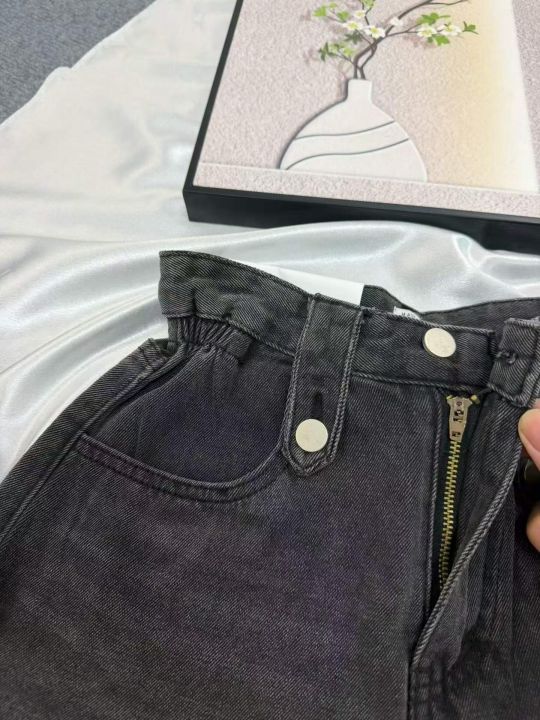 卷边牛仔短裤女夏季松紧腰阔腿高腰宽松a字梨形身材裤...