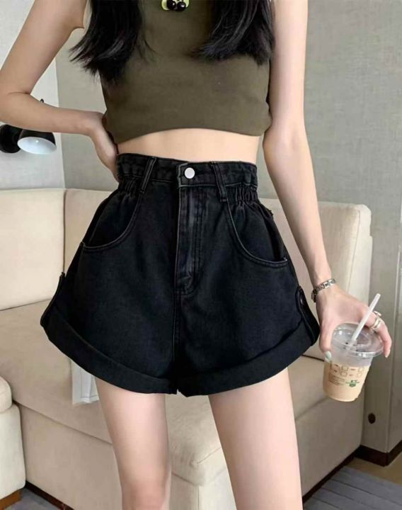 卷边牛仔短裤女夏季松紧腰阔腿高腰宽松a字梨形身材裤子25条全清9.8元,码数SM,单款单色,正品独立包装,质量很好