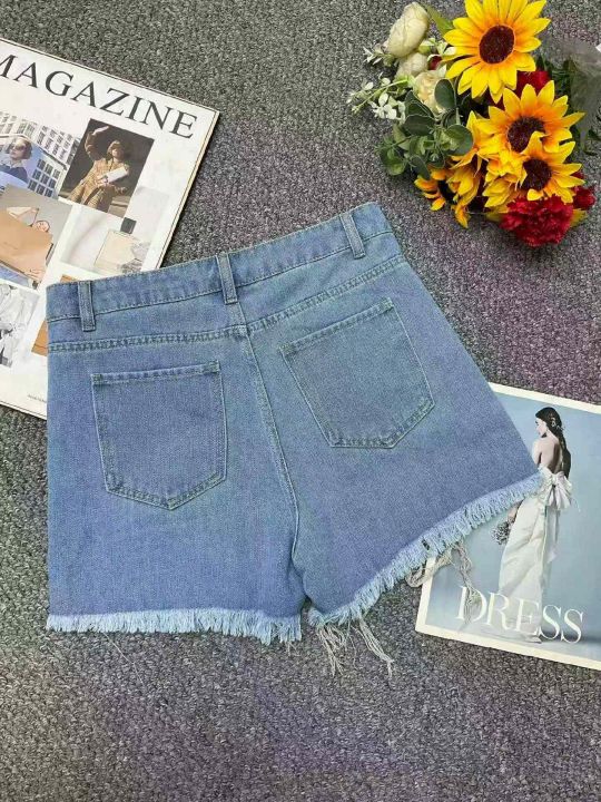 夏季新款品牌外贸原单美式宽松多扣设计款毛边牛仔短裤...