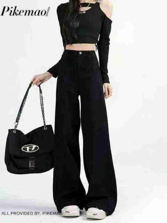 黑色阔腿牛仔裤女春夏新款高腰垂感宽松显瘦直筒拖地裤200条全清11.8元 码...