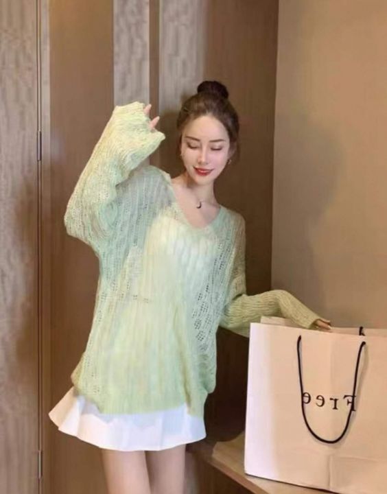 春夏季新款设计感镂空薄款微胖mm宽松慵懒休闲显瘦针织罩衫,独立包装,均码...