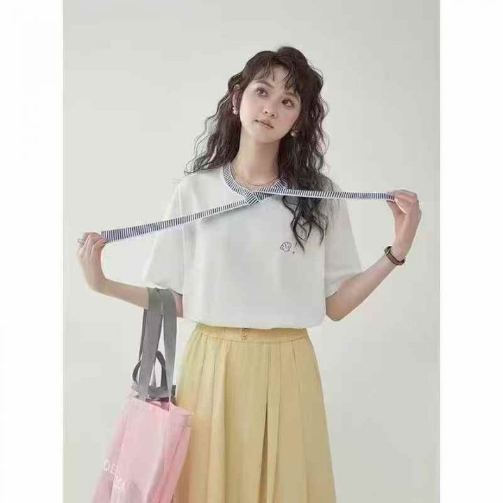 全清6.8 分货➕1 法式拼色飘带夏季设计感刺绣减龄女士纯棉短袖 数量180件...