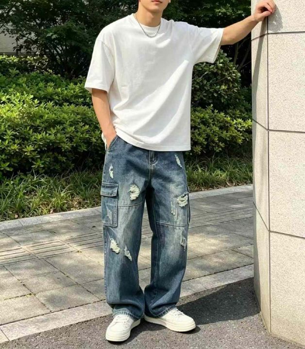 春季新款高端美式个性拼接男款宽松复古蓝设计款多袋工装牛仔裤,独立包装带吊牌,码数28-40码,740件左右,全清13.8元超低价秒杀!分货加一!