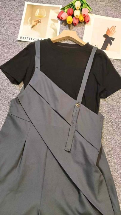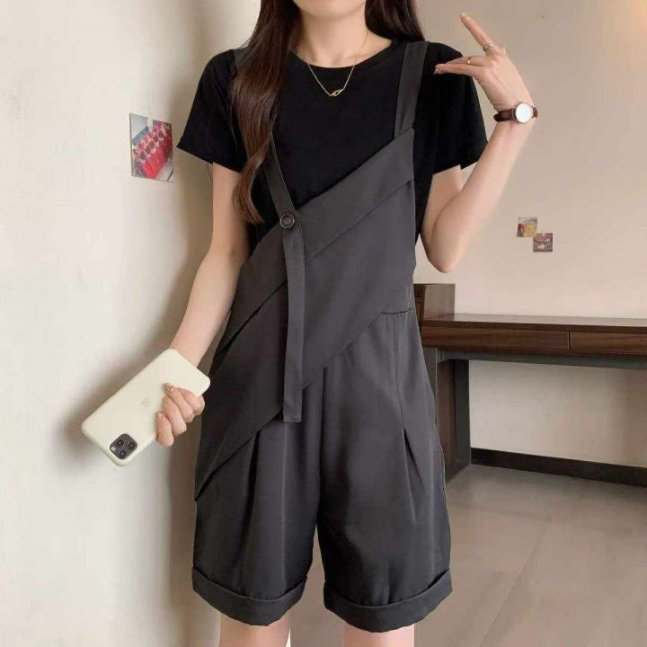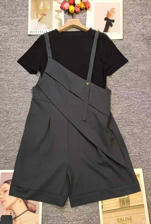 韩版不规则设计感短袖配背带裤套装,[爱心]130套左右,码数S-2XL,穿80-140斤,工厂原包原吊无瑕疵,分货加一