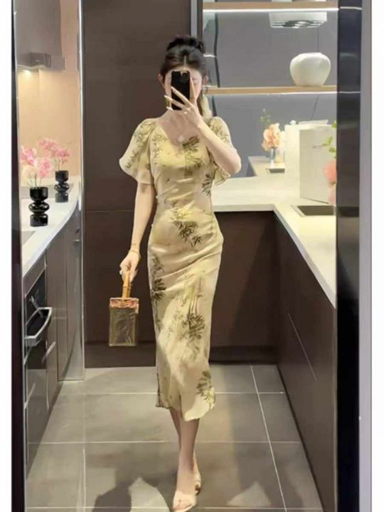 9.9清726件新中式旗袍 国风印花修身 春夏复古国风立领宽松款旗袍连衣裙 面...