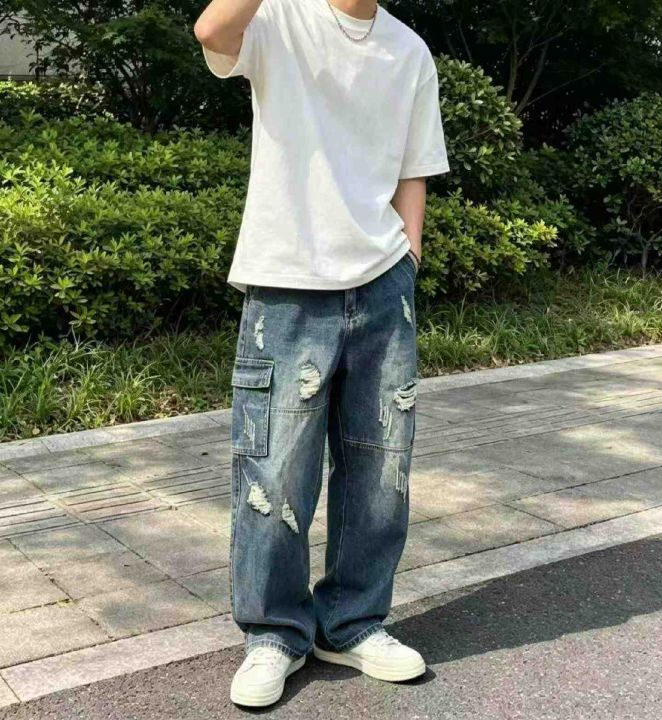 春季新款高端美式个性拼接男款宽松复古蓝设计款多袋工装牛仔裤,独立包装带吊牌,码数28-40码,740件左右,全清13.8元超低价秒杀!分货加一!