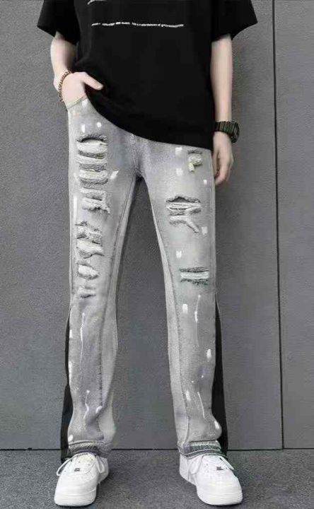 春夏季新款男美潮高街复古泼墨涂鸦直筒微喇叭牛仔裤,独立包装带腰卡,码数...
