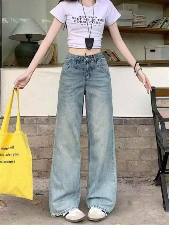 弹力浅色阔腿牛仔裤女梨形身材夏季宽松显瘦垂感直筒拖地裤30条全清12.8元,...
