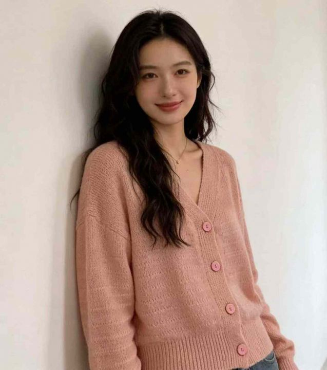秋季新品宽松慵懒风温柔毛衣开衫,独立包装,均码面料...