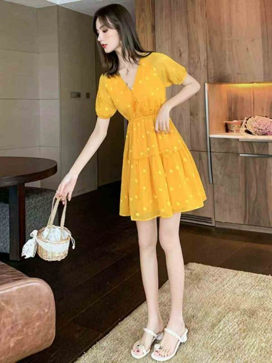 全清9.8碎花连衣裙女夏装新款桔梗气质雪纺裙 63条 S-X...