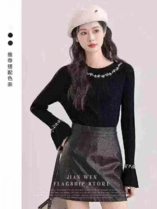 法式名媛风喇叭袖钉珠打底衫,130件,1-4码,独立包装吊牌,全清4.8元...