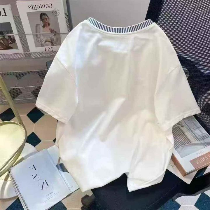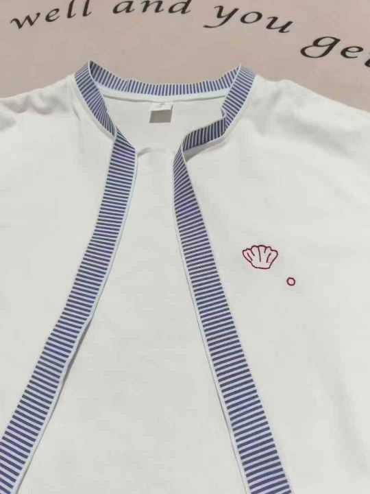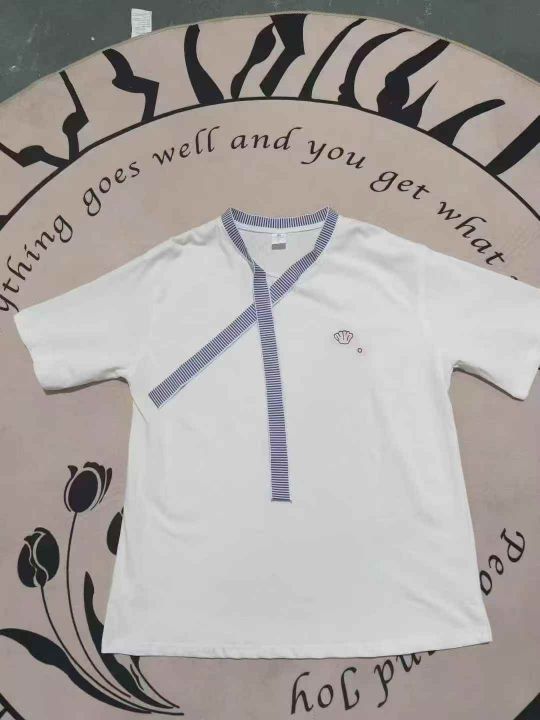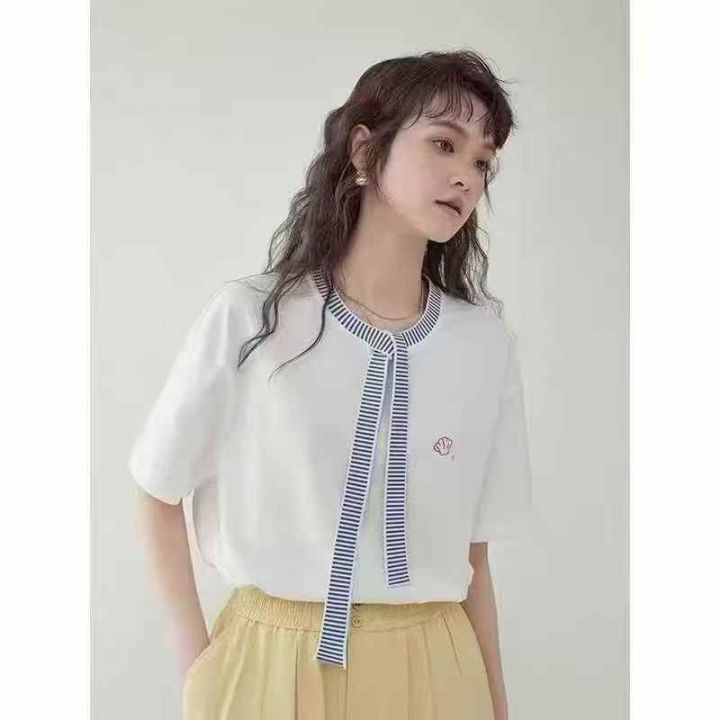 法式拼色飘带夏季设计感刺绣减龄女士纯棉短袖 数量180件左右 尺码S--L 独立包装 大货干净整洁