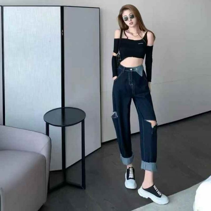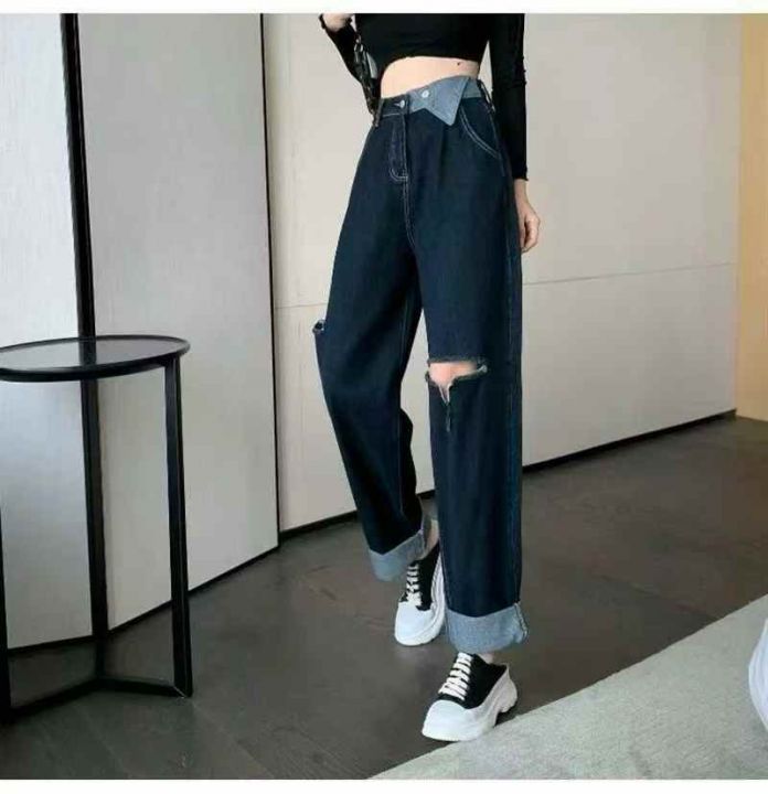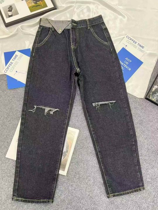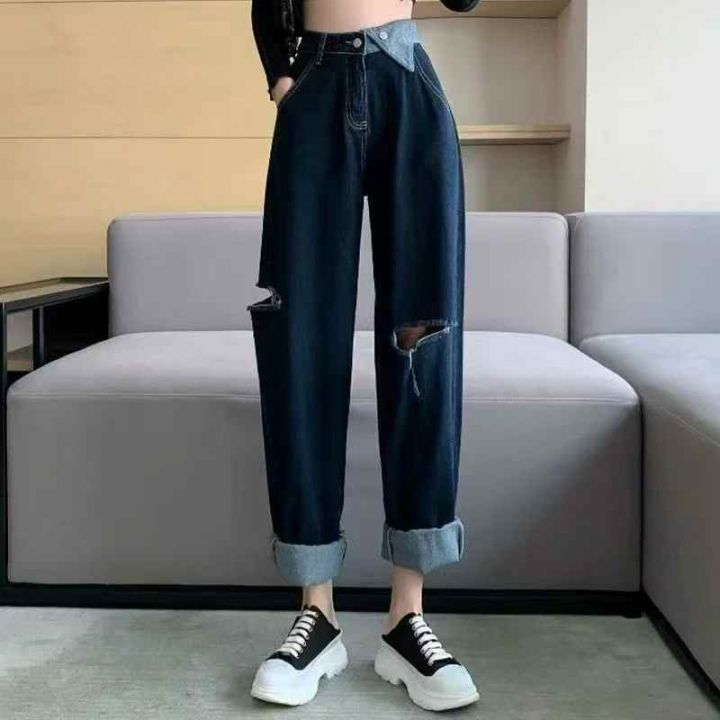 破洞牛仔裤女直筒宽松高腰阔腿裤新款chic港味老爹裤子60条全清11.8元,码数Xs到XL,正品独立包装[庆祝][庆祝][庆祝]