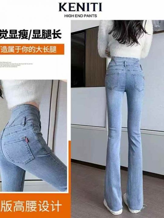 弹力微喇牛仔裤女新款高腰显瘦复古阔腿直筒裤喇叭裤子...
