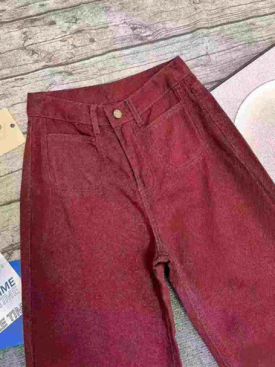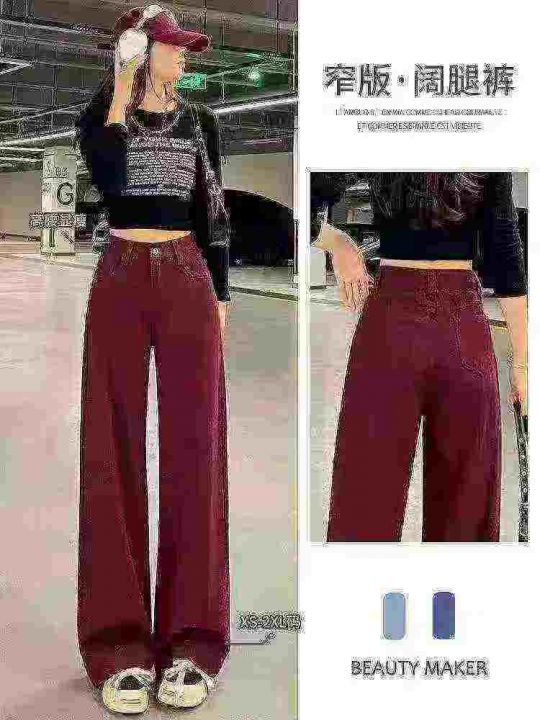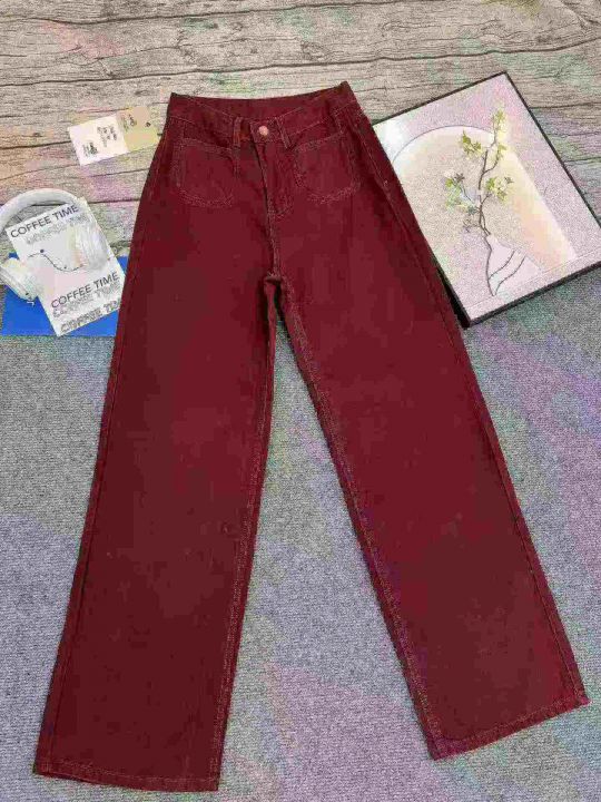 安可拉红阔腿牛仔裤女新款高腰宽松显瘦垂感直筒酒红色152条全清11.8元,码数26-30,单款单色,正品独立包装[庆祝][庆祝][庆祝]