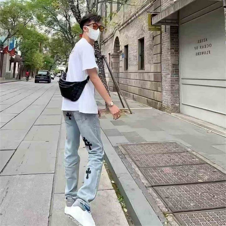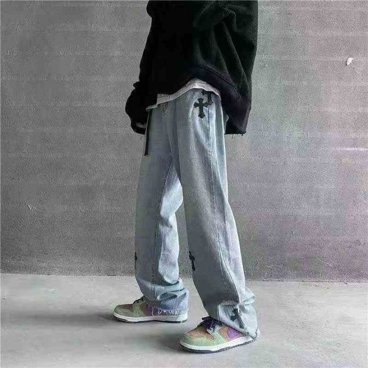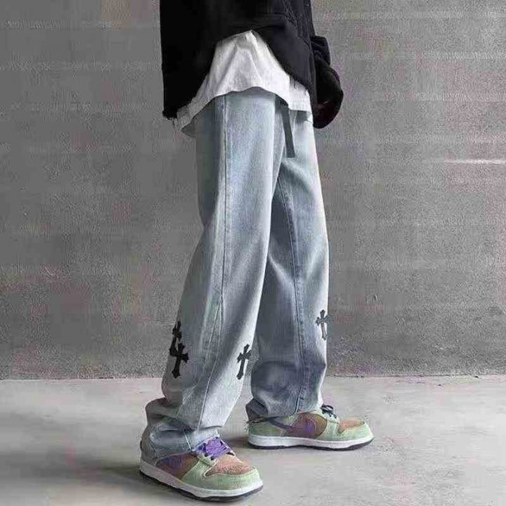 美式痞帅复古十字架男装牛仔长裤 161件,全清全清13.8元,码数S.M.XL,正品独立包装,货品干净,潮男夏季新款2026个性字母牛仔裤嘻哈ins潮高街潮流痞帅长裤