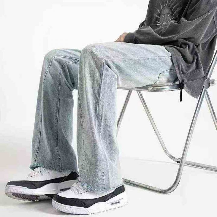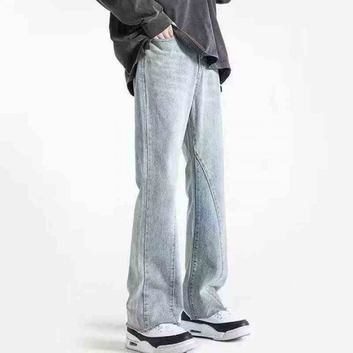 潮牌男装微喇叭直筒牛仔裤 130件,全清13.8元 ,不分货,码数:S.M,正品独立包装,货品干净,美式高街vibe牛仔裤男潮牌复古水洗浅色宽松直筒微喇休闲长裤