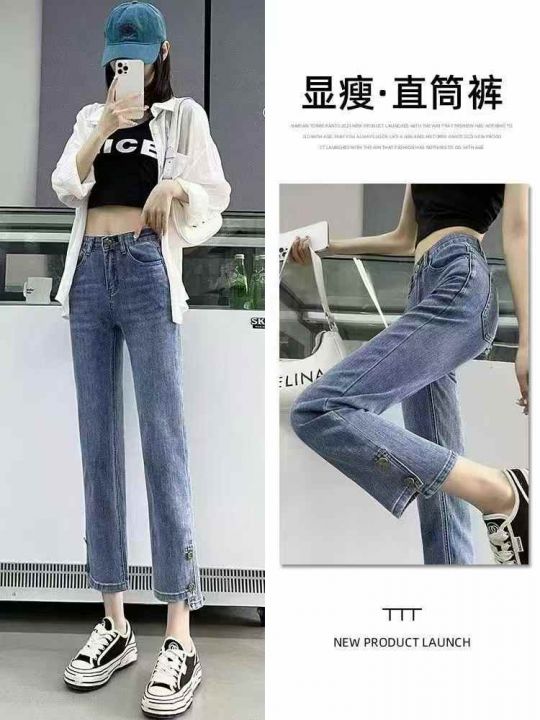 牛仔裤女新款高腰显瘦弹力开叉小个子直筒烟管裤17条全...