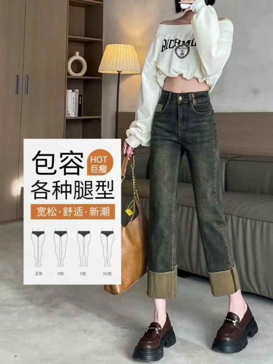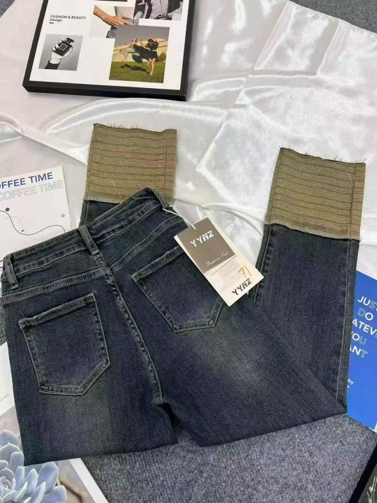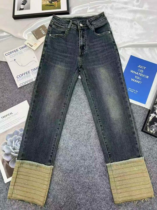 美式复古弹力烟管牛仔裤女新款高腰显瘦直筒九分裤72条...