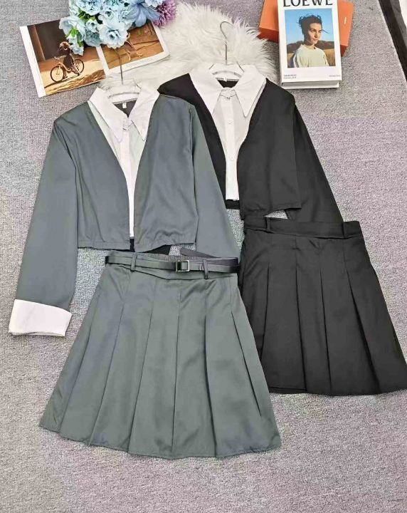 设计感气质减龄假两件套西服学院风百褶裙短裙套装,含皮带,独立包装,整款两色,码数1/2/3/4/6,数量219套