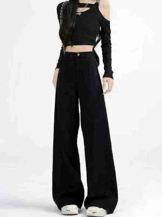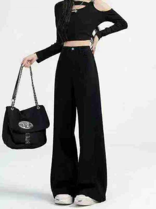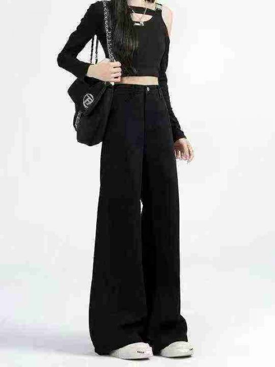 黑色阔腿牛仔裤女春夏新款高腰垂感宽松显瘦直筒拖地裤...