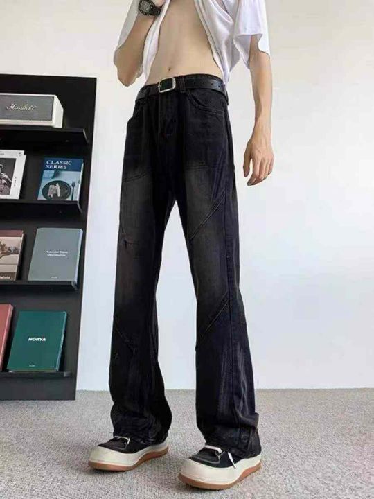 ☕️旧复古拼接直筒宽松百搭长裤潮流美式牛仔裤子小众...