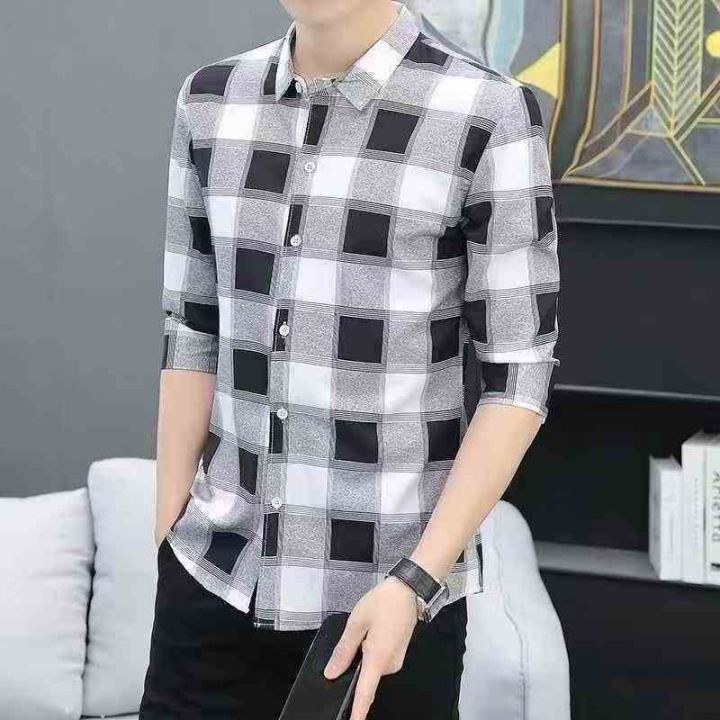 格子衬衫男长袖夏季修身薄款免烫抗皱冰丝新款上衣休闲商务衬衣,整款2色,灰色为主,M-3XL码,独立包装,货品干净,900件,6.8清,分货加1,