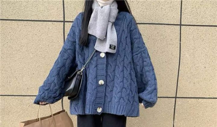 秋冬新款网红复古时尚百搭宽松麻花毛衣开衫,独立包装...