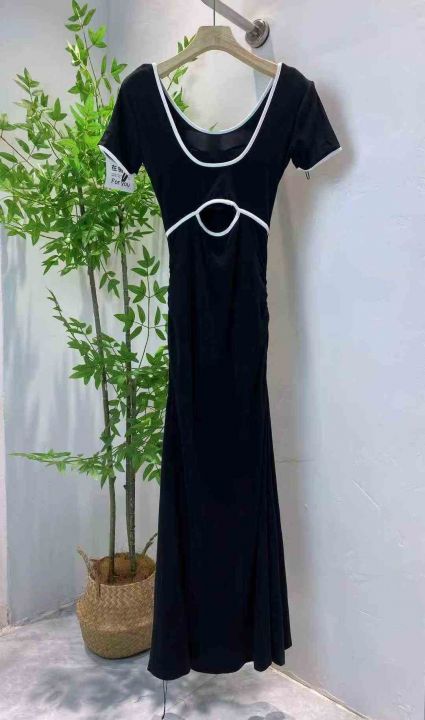 2300条撞色U领小心机露背气质修身包臀辣妹大长款连衣...