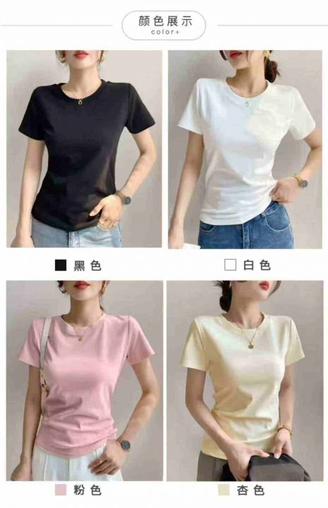 色彩丰富 网红短袖t恤女修身短袖体恤弹力百搭上衣 独立包装,码数M-2XL数量295件 高弹力,小整杂 (货号408#15)
