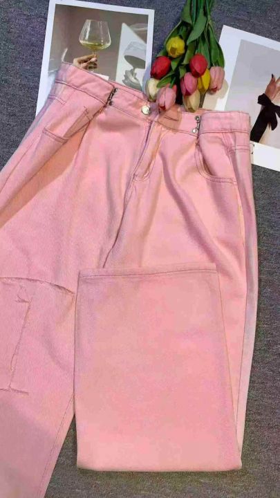 多巴胺樱花粉直筒宽松百搭牛仔裤,[爱心]360件左右,码数M-4XL,大码多,穿90-160斤,有风痕,(模特图仅供参考),不介意的宝子来