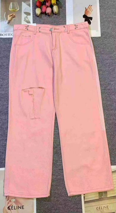 捡漏全清:3.9一件多巴胺樱花粉直筒宽松百搭牛仔裤,[...