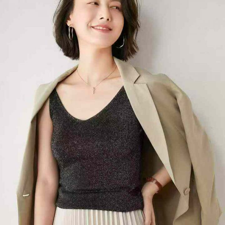 夏季新款网红复古港风细闪设计款冰丝针织吊带背心,独立包装,均码面料柔软...