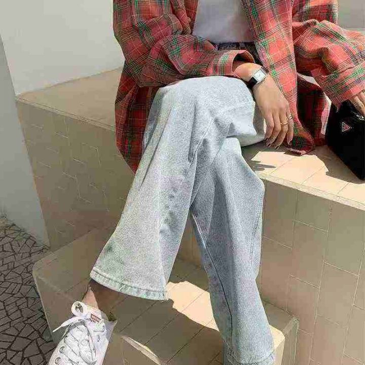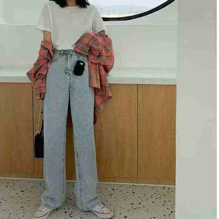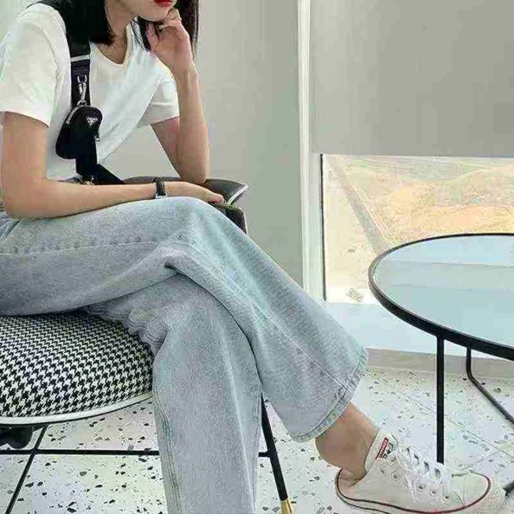 复古水洗浅蓝色阔腿牛仔裤 50件,码数~S一个码,全清10.8元,正品独立包装,货品干净,美式复古水洗浅蓝色牛仔裤女春秋宽松直筒阔腿裤百搭休闲通勤长裤
