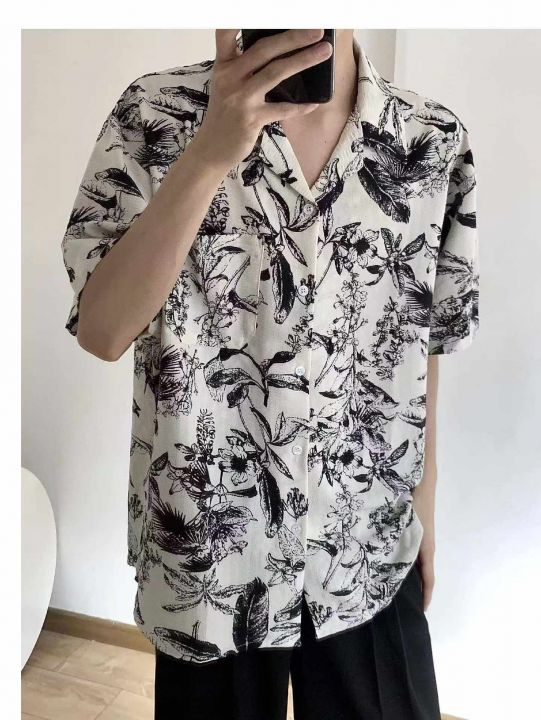 夏季新款男士度假风古巴领半袖休闲冰丝衬衣开衫,独立...