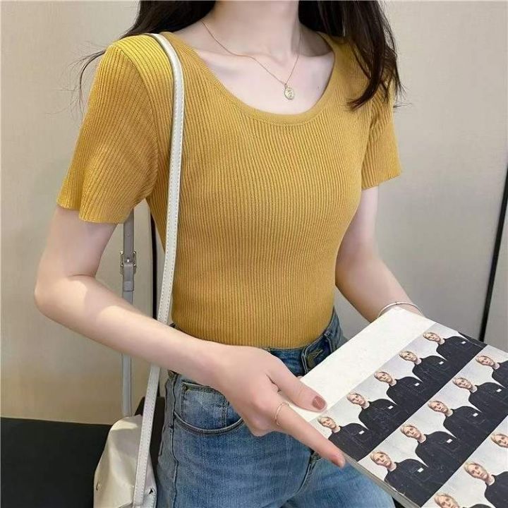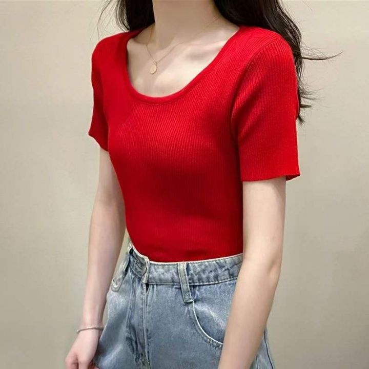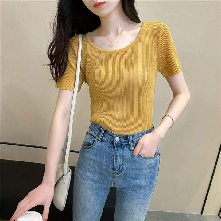 夏季新款净版简约弹力修身显瘦圆领针织短袖,独立包装,均码面料柔软舒适弹力大,430件,全清4.9元超低价秒杀!分货加一!
