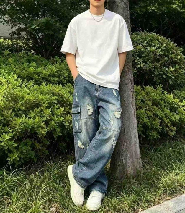 春季新款高端美式个性拼接男款宽松复古蓝设计款多袋工装牛仔裤,独立包装带吊牌,码数28-40码,740件左右,全清13.8元超低价秒杀!分货加一!