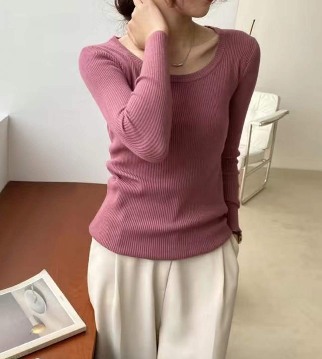 春季新款品牌原单网红净版简约多巴胺冰丝曲珠长袖针织...