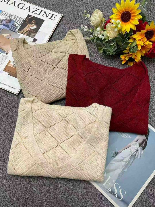 春季新款品牌外贸原单美式宽松镂空钩花长袖针织衫,独...