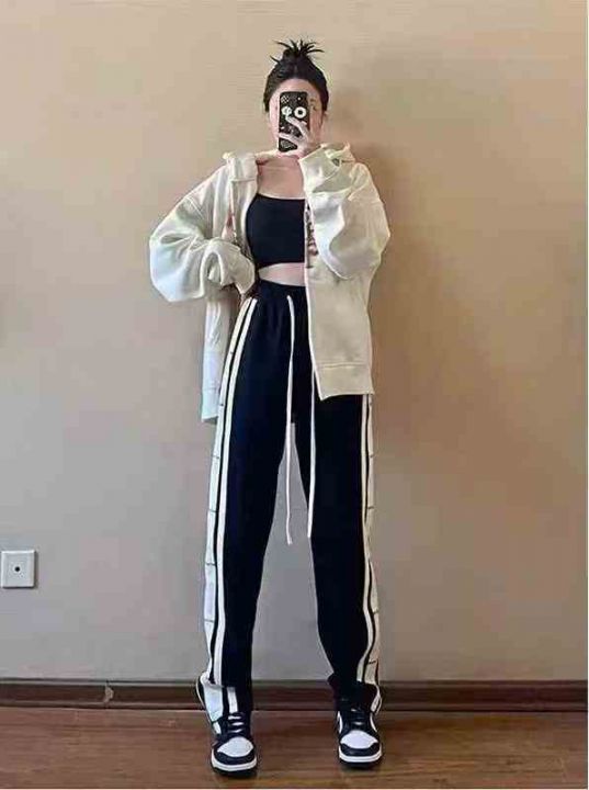 美式高街直筒裤宽松运动裤高腰卫裤垂坠感休闲长裤数...