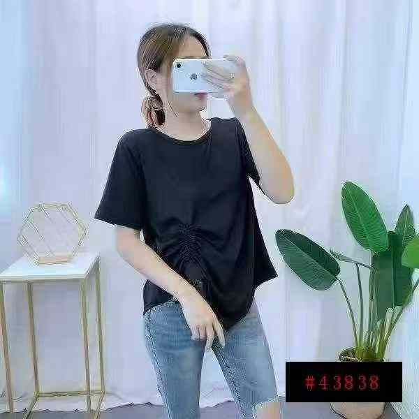 3.9清1200件/分货4.5不规则抽绳收腰设计休闲宽松T恤M-...