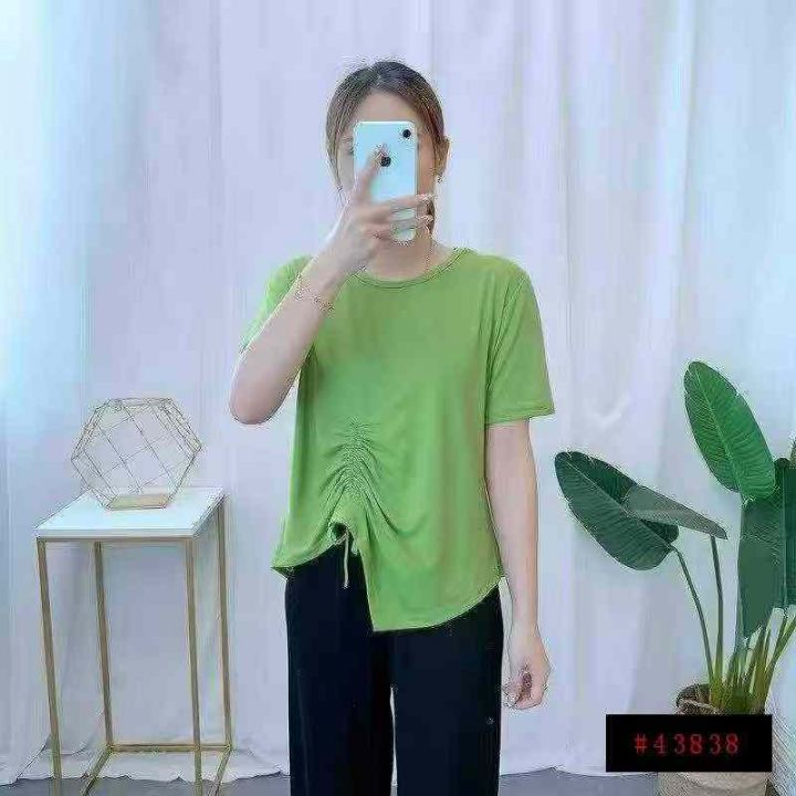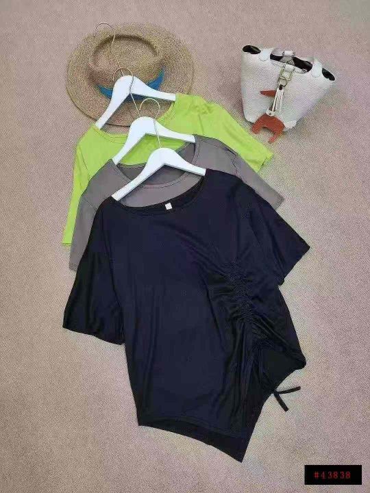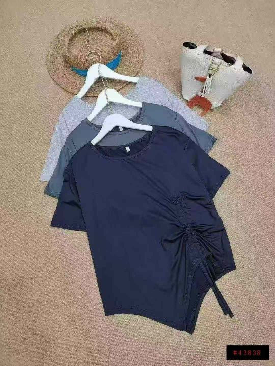 不规则抽绳收腰设计休闲宽松T恤
