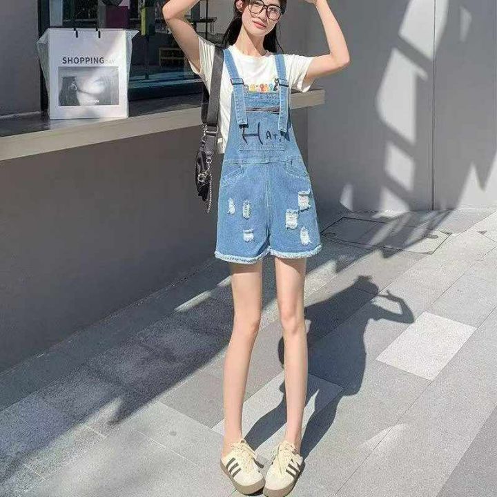 夏季新款复古洗水棉设计款牛仔背带短裤,独立包装带吊...