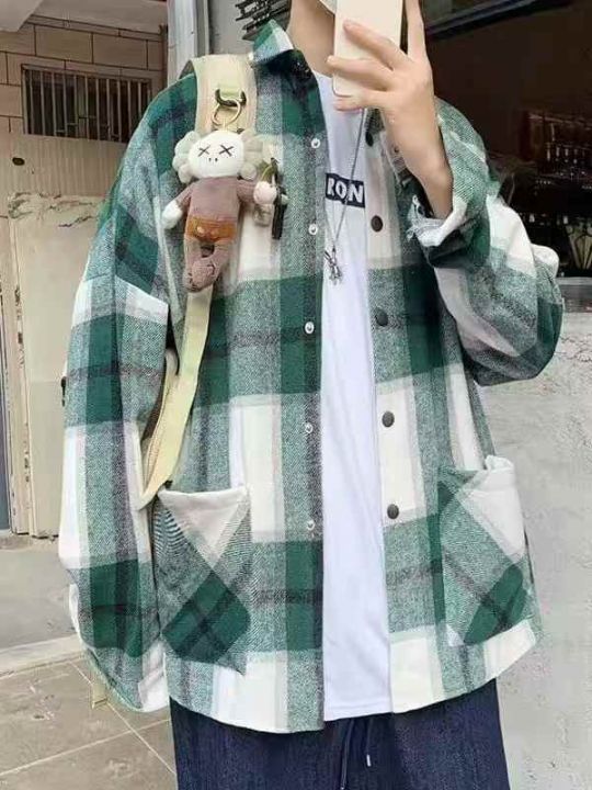 ① 撞色磨毛格男女同款长袖衬衫上衣!版型宽松,独立...