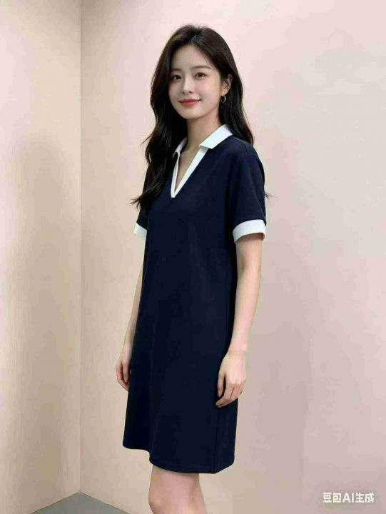 7.8元清新款POLO翻领连衣裙,大版宽松遮肉版型,数量2...