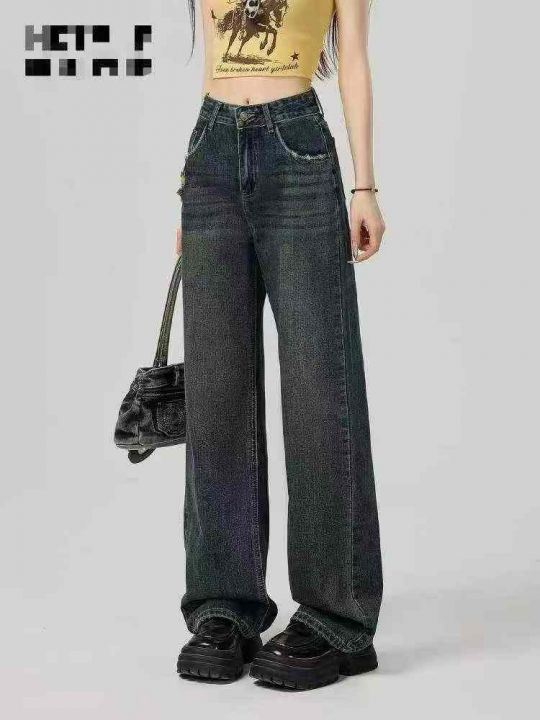 复古阔腿牛仔裤女夏新款高腰磨破直筒宽松阔腿裤306条全清12.8元,码数S到XL...