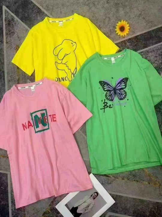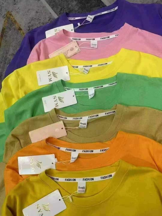 夏季男女同款潮牌糖果色时尚精品宽松显瘦百搭短袖T恤,后领包边,怎么穿都不变形[好的],颜色图案多满足各种需求[666],花色不仅限图片视频款,面料柔软舒适,做工精致,面料柔软舒适透气[强],全部全新独立包装,带吊牌,✅性价比必须给到位,100起分货8.0