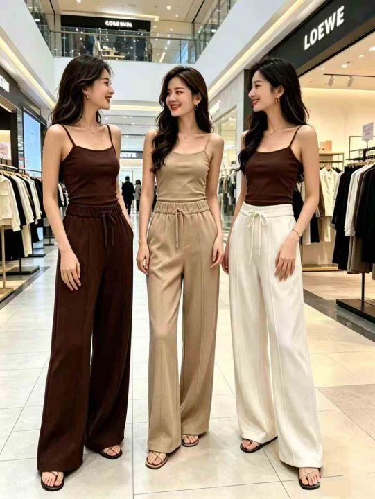 夏季热卖米尼柔软薄款高弹力阔腿直筒休闲裤,独立包装,整款多色,垂感好,码数1-5(M-3XL),数量1031条,1码裤长97厘米,分货加1