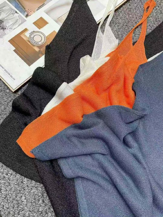 夏季新款网红复古港风细闪设计款冰丝针织吊带背心,独...