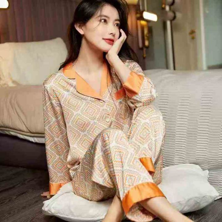 6.8清120件女仿真丝缎长袖家居睡衣 里面几件长裤2025年新款春秋睡衣女夏季...